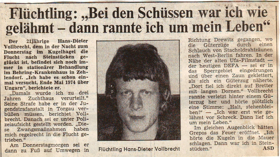 Dieter Vollbrecht 21 Jahre flüchtete am 5. Januar 1979 nach Steinstücken